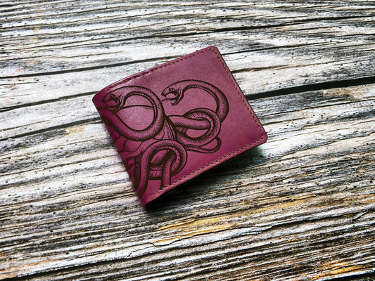 Human skull skeleton engrave pattern wallet, snake skull gift ideas, snake wallet for husband, boyfriend