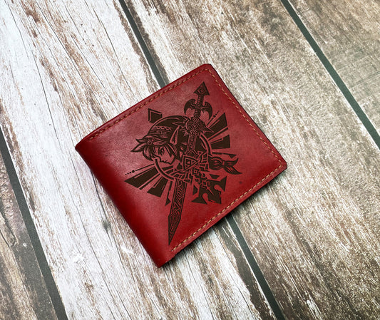 Legend of Zelda leather handmade wallet, custom Link Zelda art wallet, Zelda gift for him
