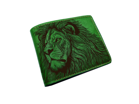 Lion drawing leather men's wallet, personalized leather handmade gift for men, animal art wallet, Lion gift idea for dad, husband, boyfriend