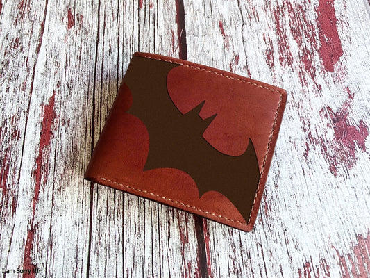 Bat logo leather men's wallet, custom engraving leather wallet, superheroes art present for boyfriend, meaningful gift for dad, husband