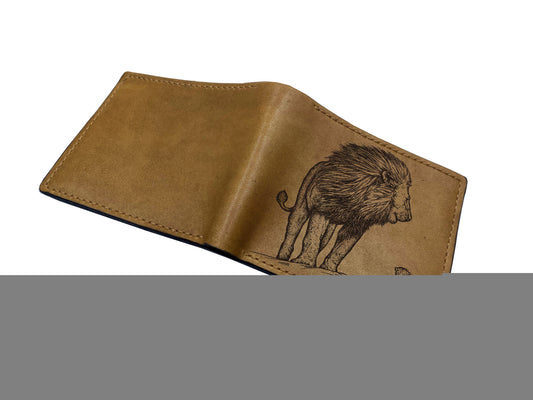 Animal pattern leather men's wallet, Lion cub drawing art wallet, Lion wallet for him, customized Father and son gift ideas