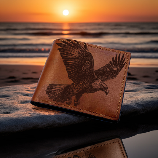 American Eagle drawing leather men's wallet, animal bird predator leather bag, Eagle men's gift, wallet for dad, husband, valentines gift