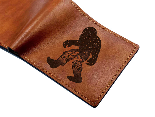 Bigfoot leather men's wallet, Sasquatch art leather gift for him, forest mythical creature wallet, custom cute monster gift for him
