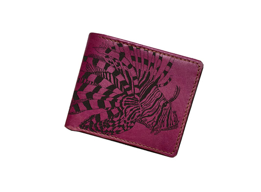 Personalized leather men's wallet, Lionfish art wallet, animal pattern present for men, ocean fish men gift