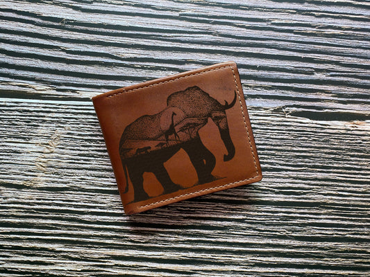 Personalized leather wallet, bifold mini card wallet, fox natural drawing wallet, animal draw gift, anniversary leather wallet for husband