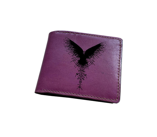Personalized leather wallet, bifold men wallet, raven moon sign art drawing pattern, celtic style leather wallet for men, gift for him