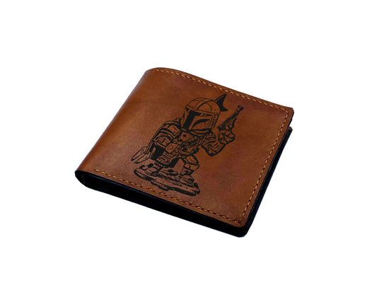 Customized leather wallet, bifold men's wallet, starwars art wallet, starwars gift ideas for boy, The mandalorian wallet