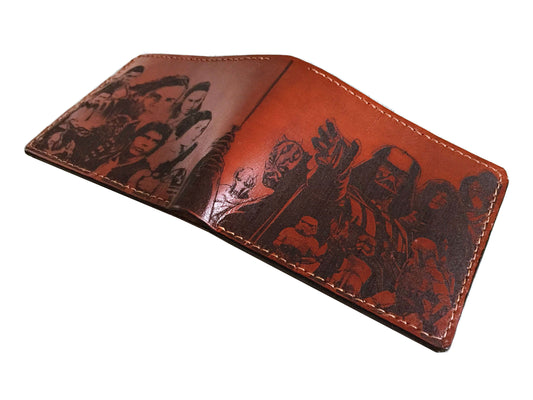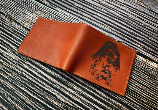 Starwars main characters personalized leather handmade men's wallet, custom birthday wedding anniversary present for him, Father boyfriend brother