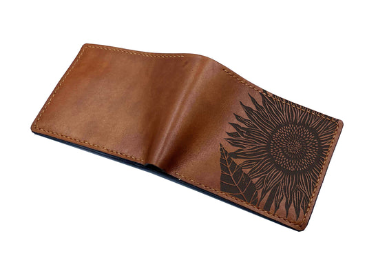Sunflower leather men's wallet, customized men's wallet, minimalist pattern art wallet, leather gift ideas for husband, father, gift for dad