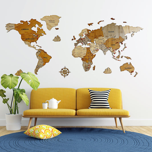 World map wooden map wall decor, wooden home decoration, wall art map, livingroom, kitchen, bedroom rustic decor - 01