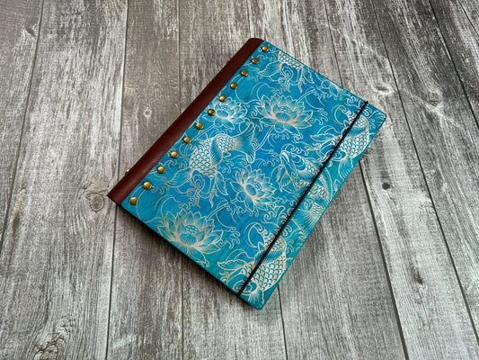 Koi fish wooden journal, Japanese pattern style journal, leather wood journal, notebook, customized refill wood journal, personalized gifts