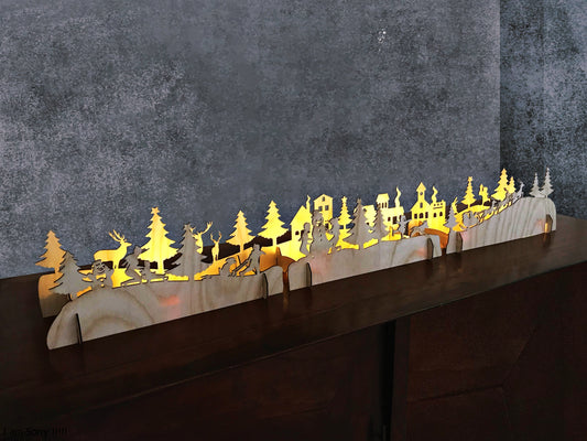 Christmas Wooden Decorations, Fireplace Mantel Decorating, Mantelpiece ideas, Christmas light Nativity Scene Xmas night Window Wooden ornaments