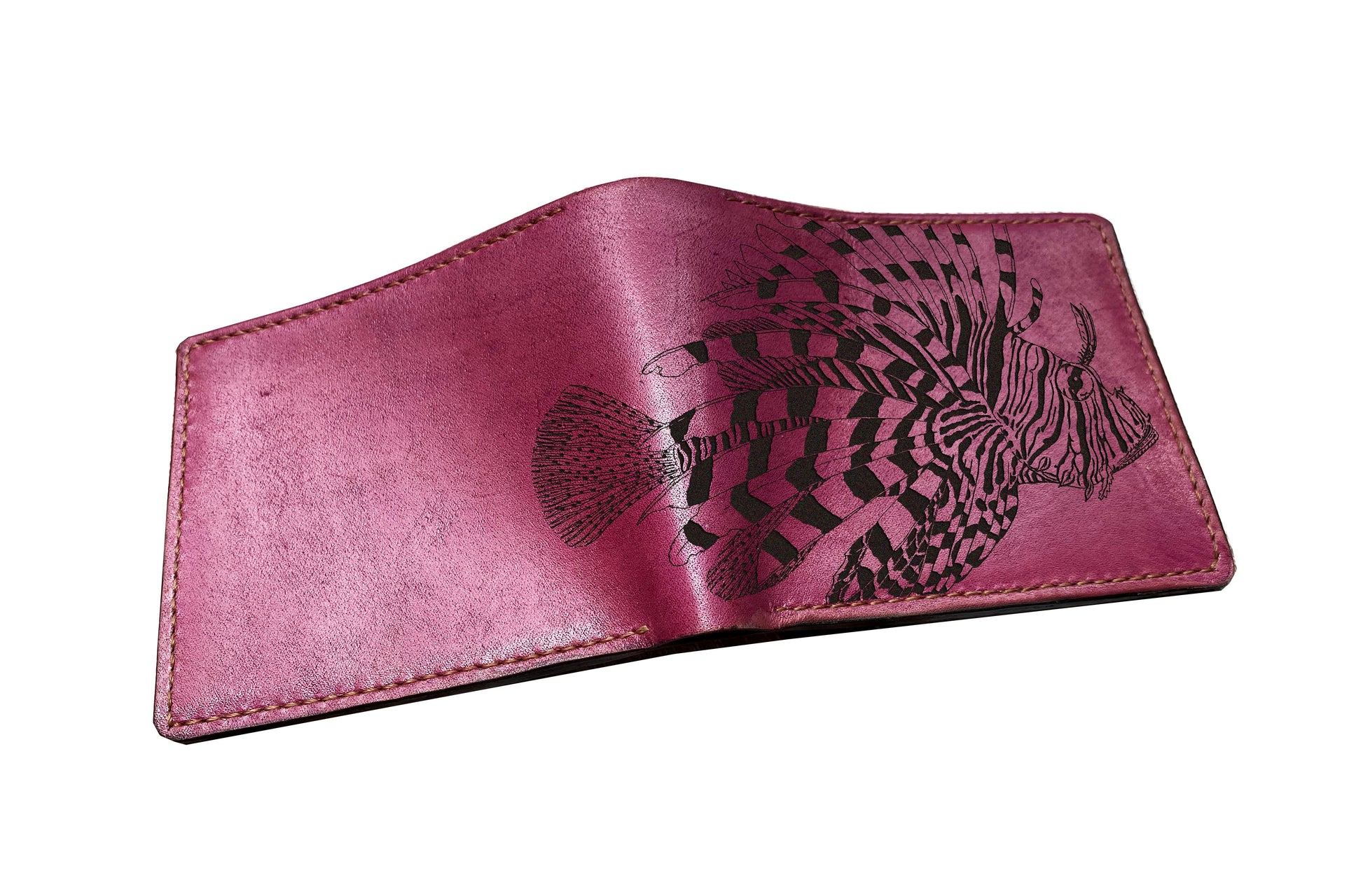 Personalized leather men's wallet, Lionfish art wallet, animal pattern present for men, ocean fish men gift